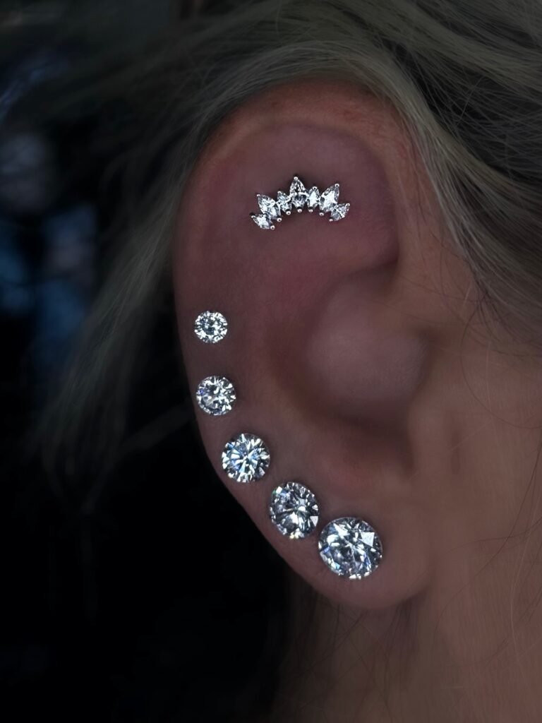 האוזן שלך היא יצירת אמנות ייחודית. בפגישת ייעוץ אישית, נתאים לך את השילוב המושלם של תכשיטים ומיקומים לפי האנטומיה והסגנון האישי שלך. בלי ניחושים, רק התאמה מדויקת לתוצאה הרמונית ומושלמת.